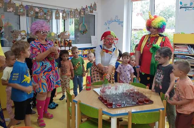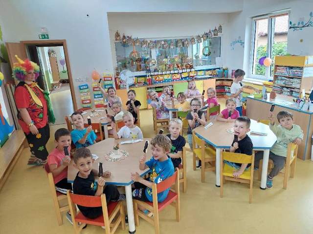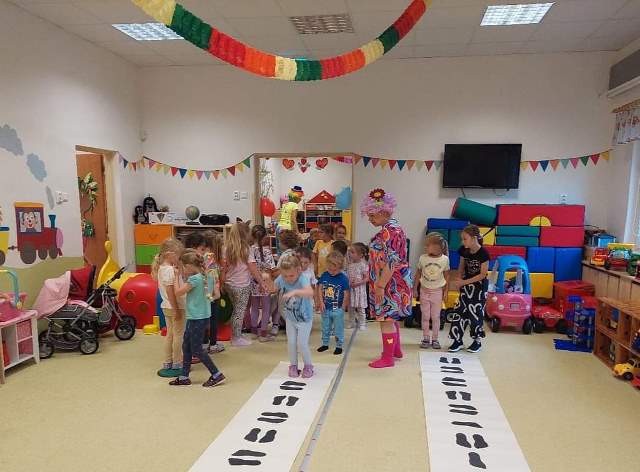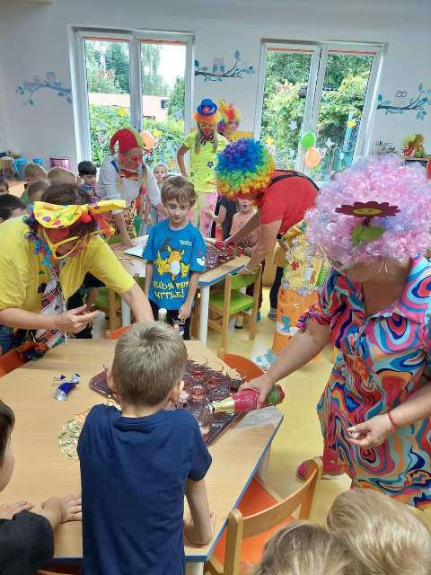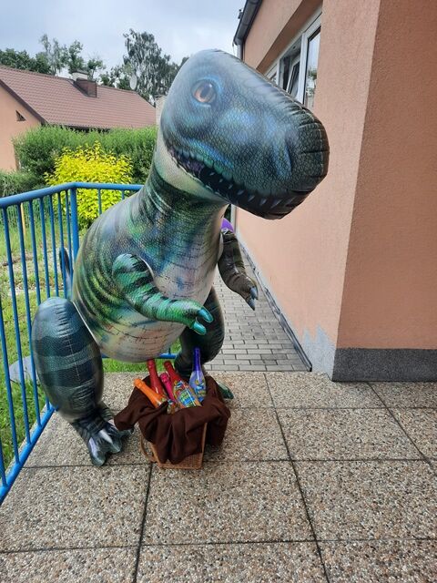 V pondělí 3. června oslavily svůj velký den také děti z MŠ Marklovice. Při ranním příchodu do školky všechny děti u vchodu v tento významný den vítal „Dinosourus“, který dětem přichystal na jejich oslavu plný košík dětských šampusů.
