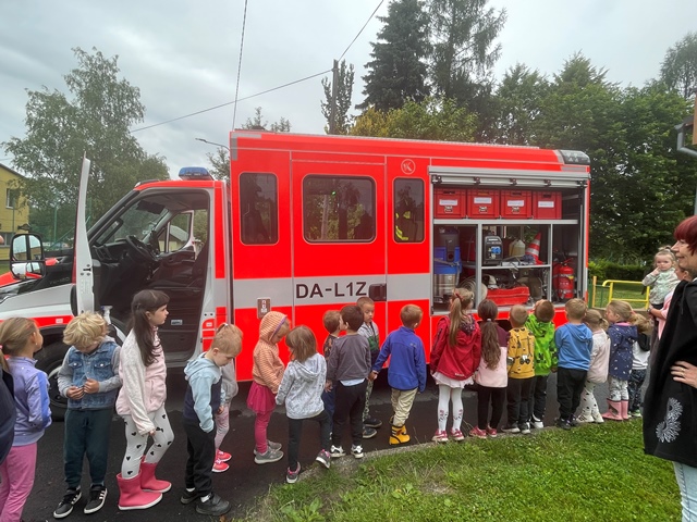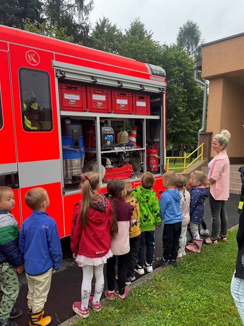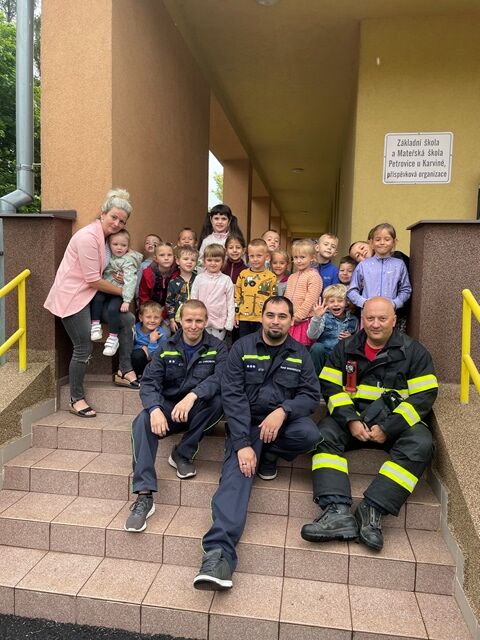 Ve středu 12.6. přijeli do MŠ Petrovice dobrovolní hasiči s ukázkou své práce a techniky. Děti se dozvěděly mnoho nových a zajímavých informací o práci hasičů.  Mohly nahlédnout do hasičského auta, prozkoumat jeho vybavení a také si mohly vyzkoušet hasičskou přilbu.