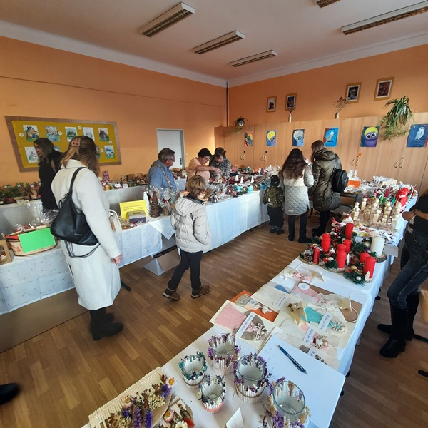 Ve dnech 22. a 23. listopadu 2024 proběhl na naší škole již tradiční Řemeslný jarmark, který, jak doufáme, zpříjemnil návštěvníkům předvánoční čas. Příznivci ručních prací a různých řemeslných technik si mohli prohlédnout a zakoupit výrobky a dekorace, které vyrobily děti v kroužcích, školní družině, v hodinách výtvarné výchovy a pracovních činností. Ruku k dílu přiložily i děti v mateřských školách. Velkým lákadlem byly i tvořivé dílničky, které měli možnost navštívit příslušníci všech věkových kategorií. Každý si mohl najít techniku, která je mu nejbližší a vlastnoručně si vyrobit hezký dárek nebo ozdobu – zvonky na zavěšení, drobnosti ze smršťovacích obrázků, andílky z květináčků nebo stromečky z vlny.