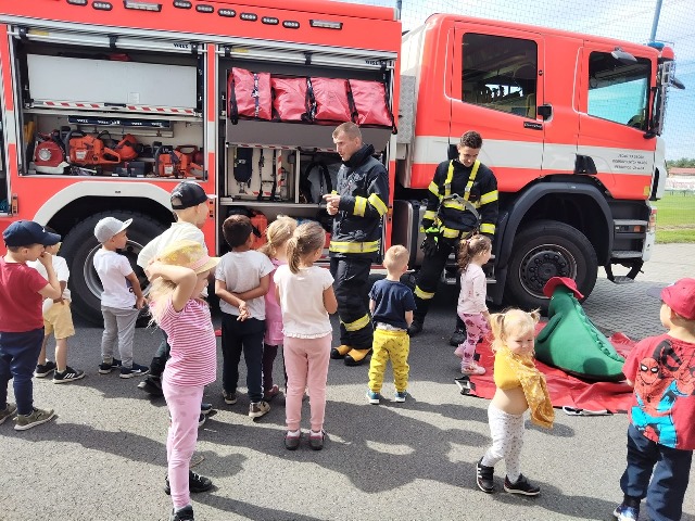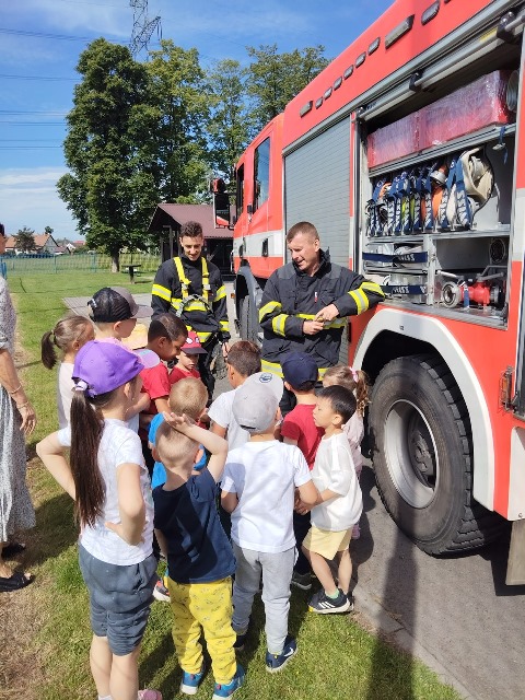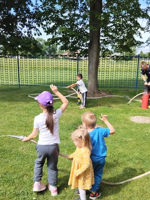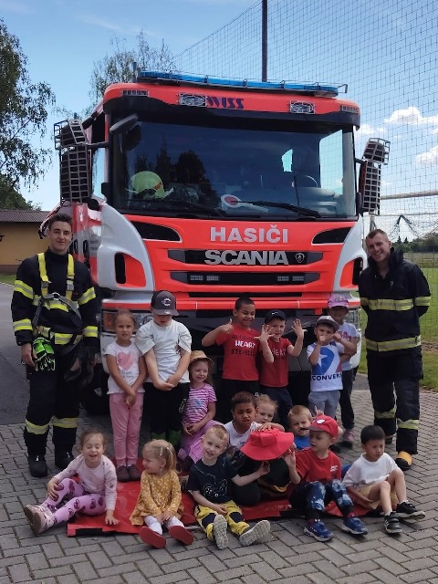 Přivítali nás hasiči pan Wojcik a Křevký i se svým maskotem, dráčkem Hasíkem. Nejprve nás seznámili s důležitými pravidly – jak se zachovat při požáru, na co si máme dávat pozor nebo důležitá pravidla při rozdělávání ohně. Následně jsme shlédli ukázku zásahu při hašení požáru, záchranu dráčka Hasíka a také si zblízka prohlédnout hasičský vůz. Dozvěděli jsme se spoustu zajímavostí a následně jsme si některé disciplíny vyzkoušeli v praxi. Děti si vyzkoušely, jak jsou zdatné v běhu a také jestli zasáhnou vodním proudem z hasičské hadice cíl, kterým byla plechovka.