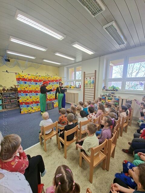 Tento týden byl pro děti z naší mateřské školy opravdu pohádkový. Ve středu 11.března i ve čtvrtek 12.3. na ně čekal zajímavý program plný divadla, smíchu a krásných příběhů. Ve středu zavítalo divadlo přímo do mateřské školy. Herci dětem zahráli veselou pohádku O mlsné opičce, která vyprávěla o opičce, jež měla ráda všechny sladkosti a dobroty, ale postupně zjistila, že všeho moc škodí. Děti sledovaly představení s velkým nadšením, aktivně reagovaly na děj a často se smály veselým scénám. Představení bylo velmi hravé a herci zapojovali děti i do děje, což se malým divákům velmi líbilo. Ve čtvrtek pak děti čekal další kulturní zážitek. Společně vyrazily do kulturního centra v Petrovicích, kde se konalo divadelní představení Těšínského divadla  Princ Bajaja. Tentokrát šlo o kombinaci hrané a loutkové pohádky, která děti zaujala nejen krásnými kostýmy, ale také zajímavými loutkami.  Představení bylo navíc výjimečné tím, že bylo mluvené střídavě česky a polsky. Na pohádku totiž přijely také děti z polské školy. Díky tomu si malé publikum mohlo užít nejen pohádkový příběh, ale také přátelskou atmosféru setkání dětí z obou stran hranice.