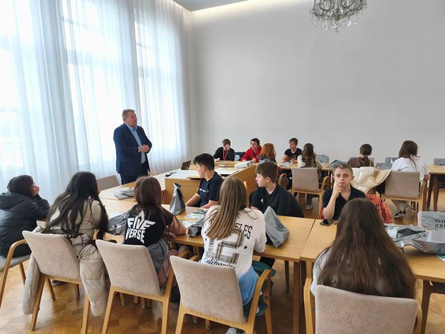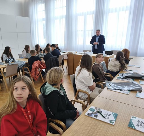 Součástí programu bylo také setkání se starostou obce, panem Marianem Lebiedzikem, který žákům přiblížil náplň své práce. Žáci si rovněž vyzkoušeli práci členů obecního zastupitelstva a pak si hravou formou ověřili své znalosti získané v rámci besedy.