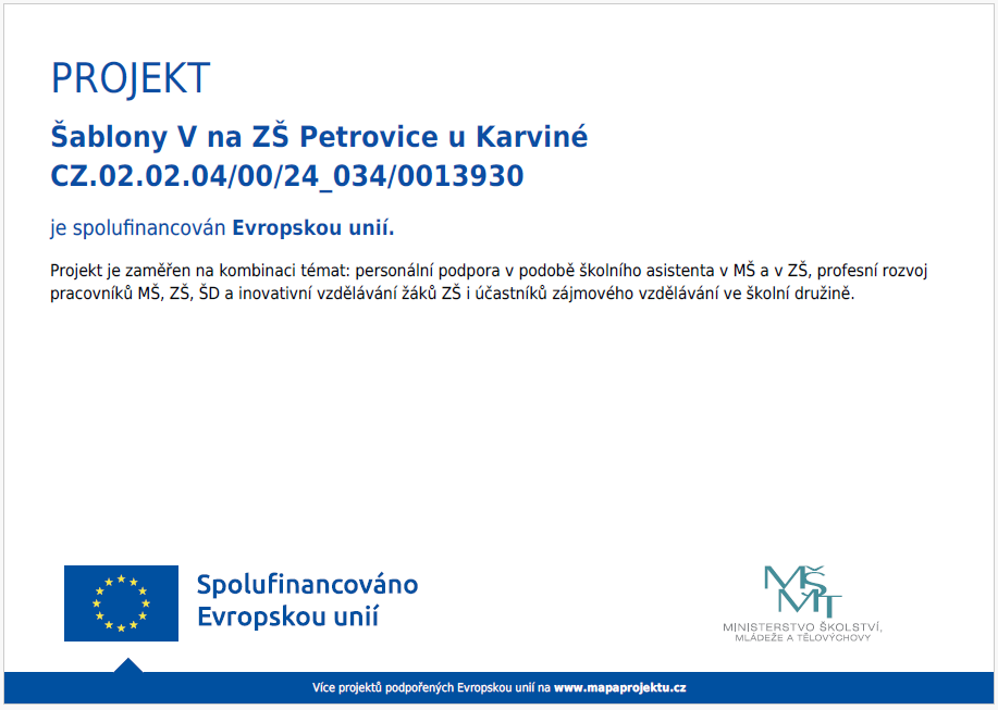 Partner: Základní škola a Mateřská škola Petrovice u Karviné, příspěvková organizace